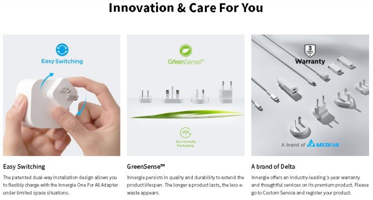 Innergie Universal plugs fit in US, EU, UK & AU Versions